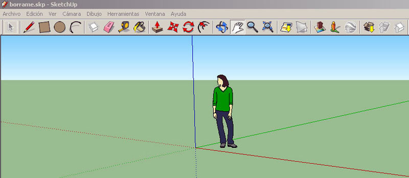 La imagen siguiente muestra los ejes de dibujo en SketchUp (las líneas se muestran